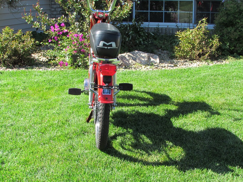 Back in 1978 this moped was purchased new and gently used by the family who only managed to add about 600 miles to the odometer. Sometime in the early eighties, there was a mishap with the oil that was supposed to be added to the gas…it wasn’t. That resulted in the engine coming to an abrupt halt and a very sad family. The moped was covered and stored in a dry and heated basement for the next 30 years. Through a friend of the family, we were able to acquire it and return it to its former glory!