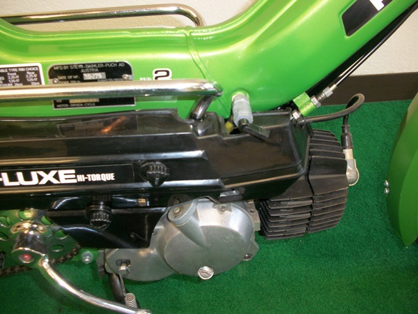 Fully restored green 1978 Puch Maxi-Luxe. This moped has a mildly modified rebuilt engine and carb and cruises nicely at around 35 mph. It sounds good and rides great. It’s comfortable, reliable and tight. There are many, many new parts including paint, graphics, brakes, tires, mirror, grips, speedo, electrical, ignition, and engine parts. Free delivery and a complete 30 day warranty on the entire moped! $1400.00