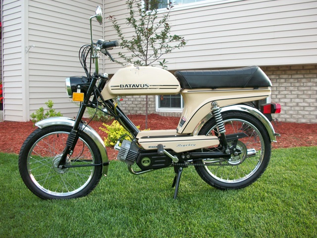This particular moped is ready for endless fun! It has some dings and scratches but is in overall excellent condition. We didn’t fully recondition it but we did fully service the entire bike and installed new quality tires and other parts. It runs like new and will cruise all day very nicely at 30 mph and dodge gawkers and onlookers with precision.