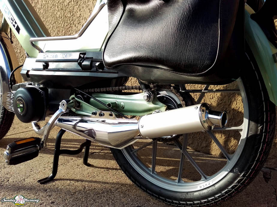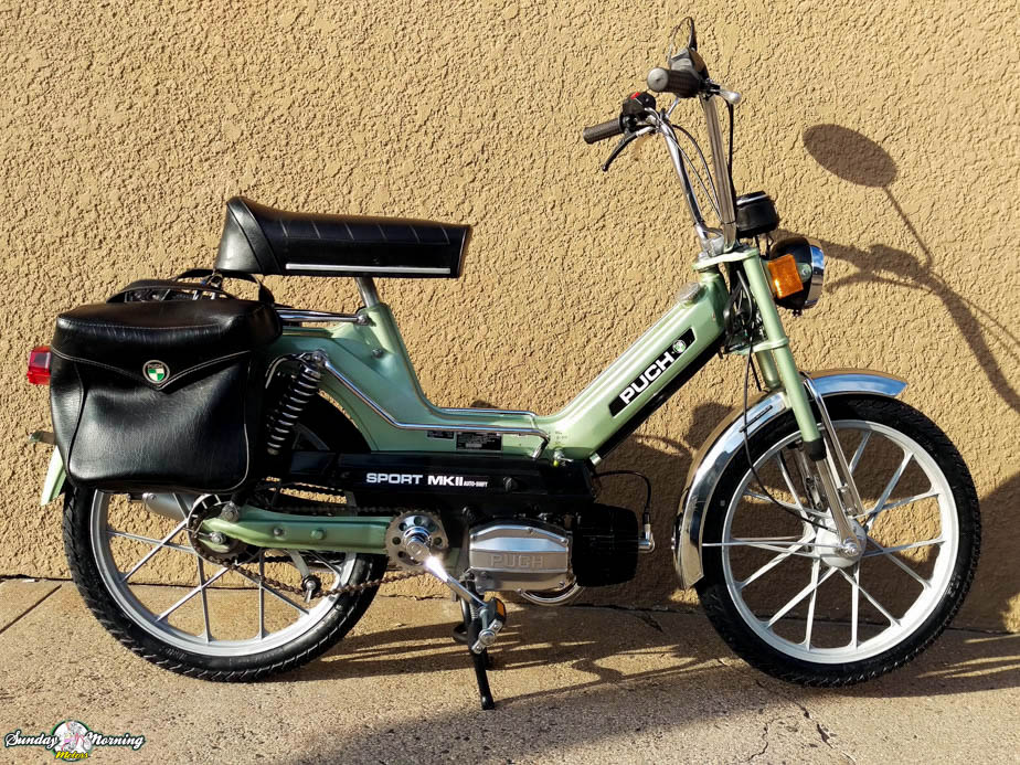 Wonderful frost green 1978 Puch Maxi Sport MKII that features a professionally rebuilt 2 speed automatic engine and transmission. This hard to find and desirable vintage Puch moped was meticulously reconstructed to look good and to perform even better.