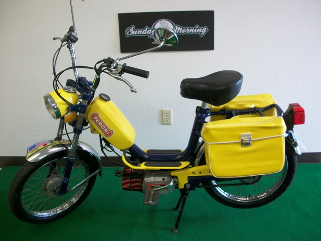 Everything about this unique vintage moped is sheer awesomeness. When you sit on it for the first time, your eyes examine the components and controls that are polished to a mirror-like finish. Everything is tight and fully functional. The windshield can be removed in a matter of seconds but you have already decided to leave it always attached. The original blinker system that was offered as an option in 1978 has been fully rebuilt as well and you move the directional switch back and forth testing out the blinkers as kind of a pre-ride safety inspection.