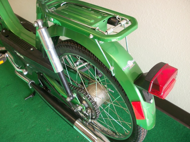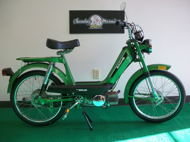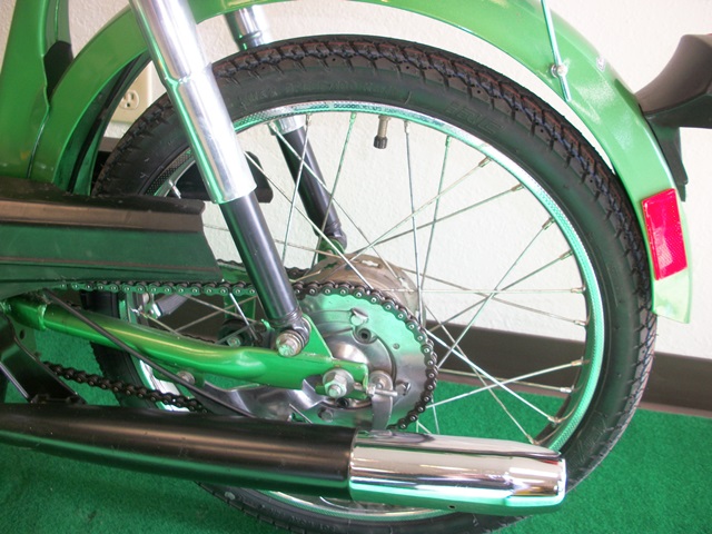 Chrome, chrome and more chrome! This reconditioned moped from Holland’s Sparta Co. is without a doubt one of the highest quality bikes to ever be exported to the United States back in the late 70’s. The GT Deluxe model came with a full front and rear hydraulic suspension, high and low beam headlight, loud horn, chrome luggage rack, high quality and comfortable long seat and many other features not found on the majority of mopeds back then! This outstanding looking Netherlands classic runs like new with its freshly rebuilt German Sachs 504-1A engine. We installed new brakes, tires, magneto coils, grips along with fully servicing this bike from front to back! Even the speedometer was rebuilt and the odometer reset back to zero. Includes free delivery throughout the Minneapolis/St Paul/St Cloud metro areas and a 30 day warranty on the engine. $975.00