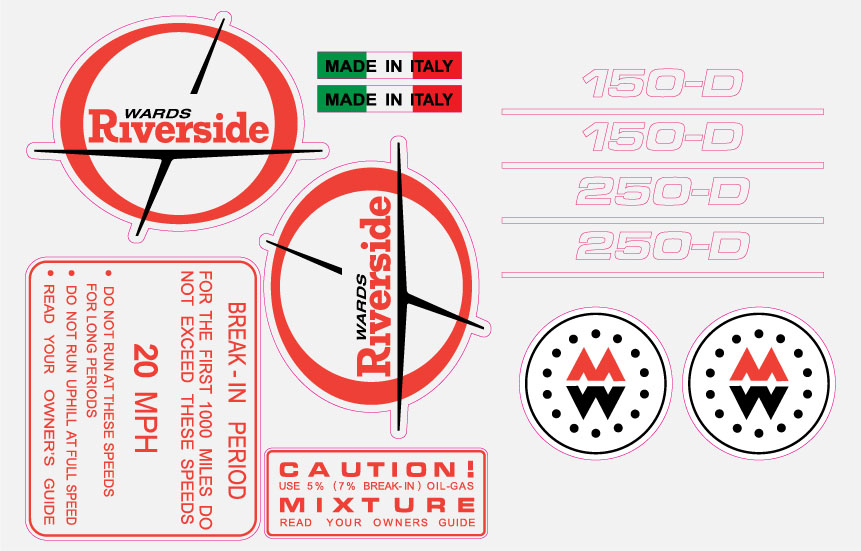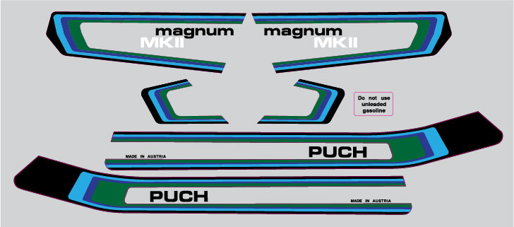 No real restoration is complete without the final detail of new decals and graphics. The sets below are the same ones we use whenever we restore a moped back to its original condition. Greg of Fryer Design Inc, has spent many hours replicating each set of original factory graphics for us. He is very good at what he does and is very particular about even the smallest details. Now you can purchase any of the following awesome sets directly from us as well without the costly set-up or design fees; we have already paid them for you!