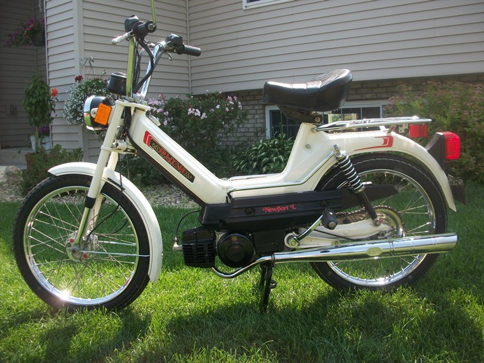 This moped comes with a fully rebuilt 2HP E50 single speed engine, rebuilt carb, new tires and lots more! Runs like new, looks beautiful and will last many, many years with just simple and basic maintenance. $850.00 Delivered