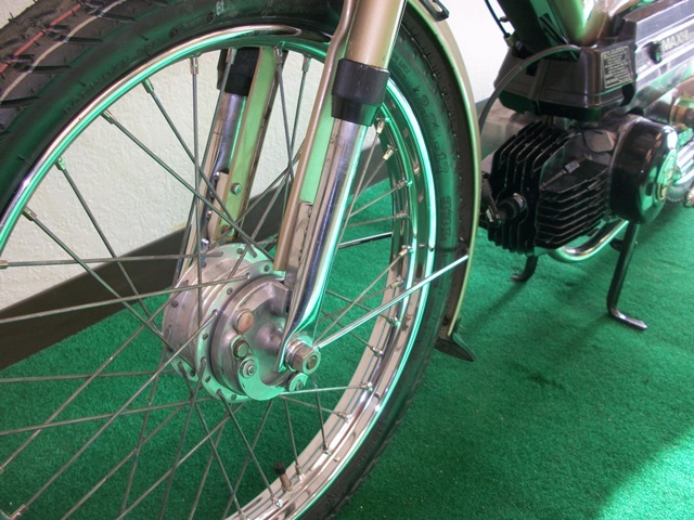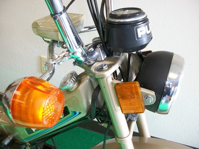 Everything about this unique vintage moped is sheer awesomeness. When you sit on it for the first time, your eyes examine the components and controls that are polished to a mirror-like finish. Everything is tight and fully functional. The windshield can be removed in a matter of seconds but you have already decided to leave it always attached. The original blinker system that was offered as an option in 1978 has been fully rebuilt as well and you move the directional switch back and forth testing out the blinkers as kind of a pre-ride safety inspection.